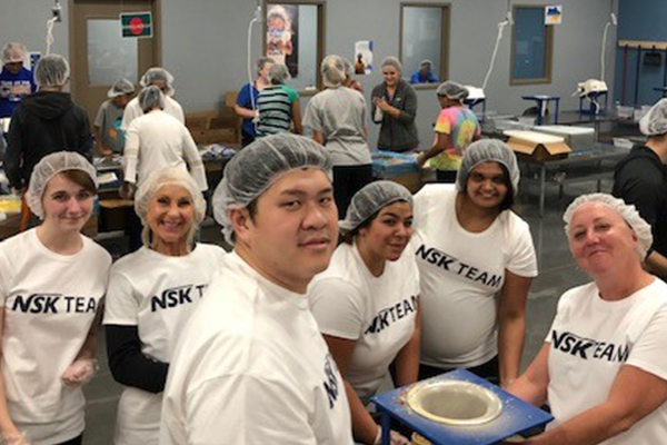 In October 2019, volunteers from NSK America Corp., our local subsidiary in the U.S., joined the activities of the NPO, Feed My Starving Children (FMSC), to pack and ship food packages to children around the world on the brink of starvation.